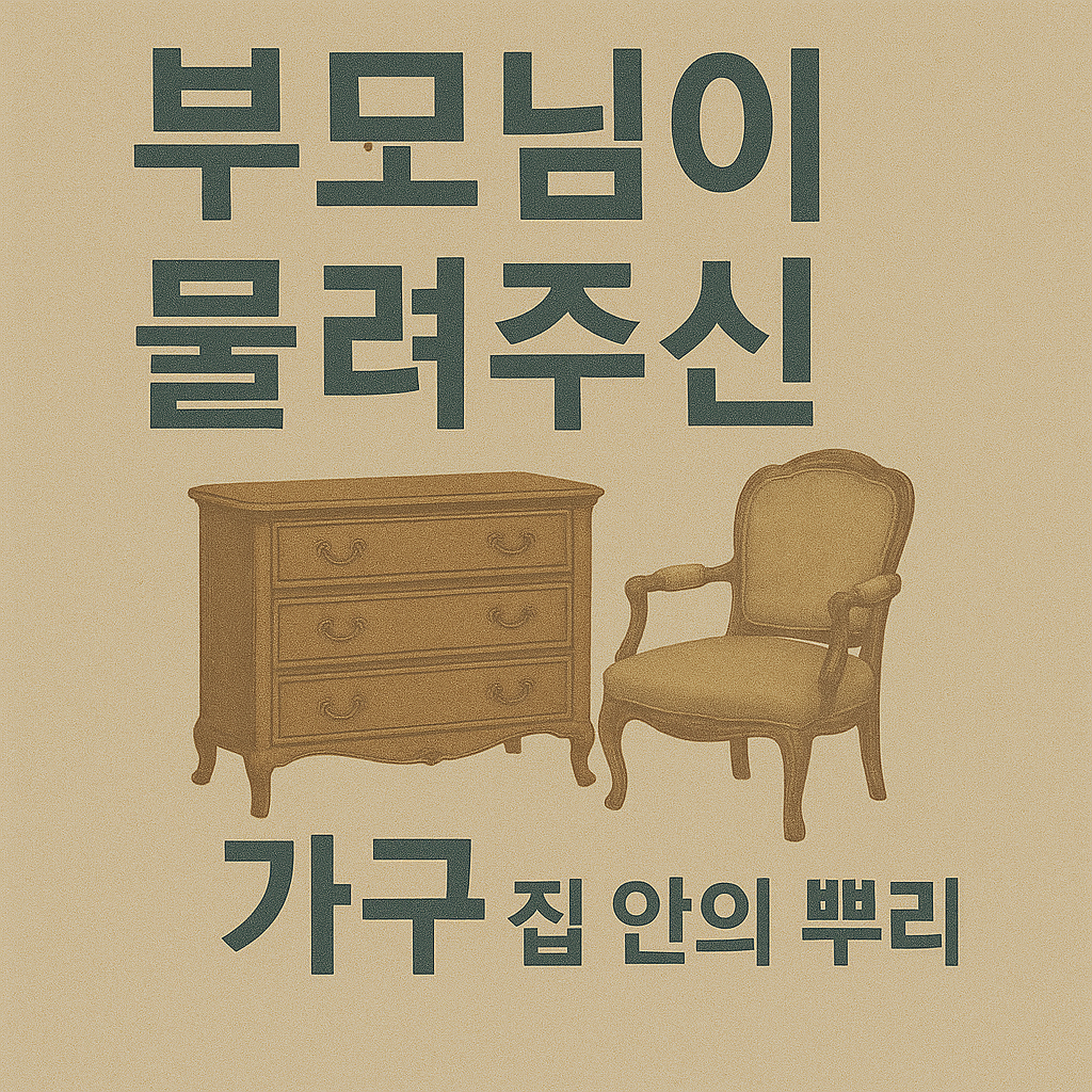 이 글은 「나를 닮은 물건들」 시리즈의 일곱 번째 이야기입니다. 이전 글에서는 색이 바랜 사진 한 장 – 시간이 남긴 얼굴, 편지 한 장 – 마음을 전하는 힘, 오래된 손목시계 – 멈춘 시간 속의 기억 등을 나눴습니다. 오늘은 부모님이 물려주신 가구가 전해주는 삶의 무게와 따뜻함을 담았습니다.