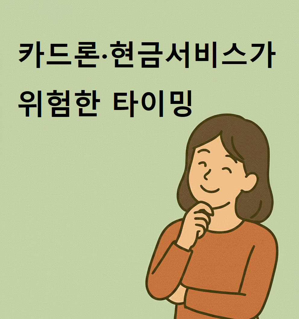 하지만 많은 사람들이 모르는 사실이 있습니다. 카드론·현금서비스는 ‘쓸수록’ 위험한 게 아니라 ‘특정 타이밍’에 쓰면 치명적으로 위험해진다는 점입니다.