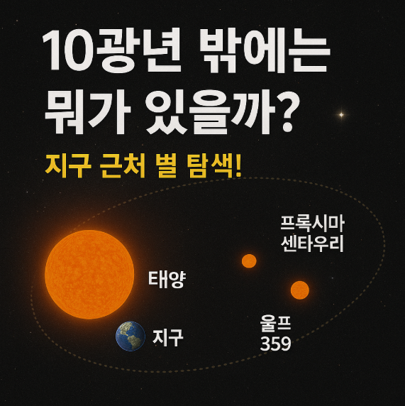 “10광년 떨어진 별”이라고 하면 너무 멀게 느껴지시나요? 사실 우주의 규모에서는 10광년도 이웃 동네 수준입니다. 이번 글에서는 10광년 안쪽에 있는 별들은 어떤 곳인지, 실제 우리가 그곳을 관측하거나 갈 수 있는 가능성은 있는지 쉽게 풀어보겠습니다.
